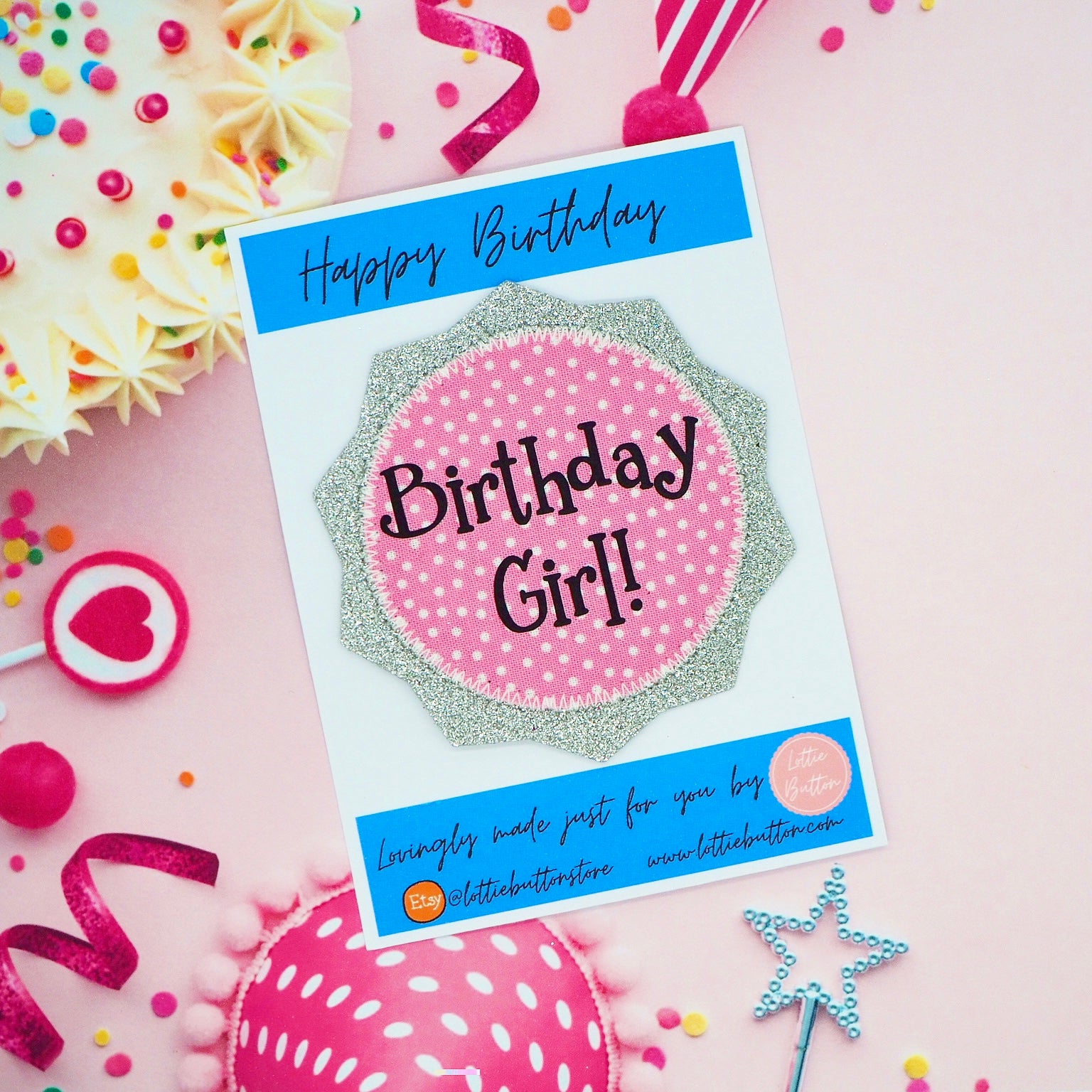 Badge measure approx 3" wide and comes presented on a backing card reading 'Happy Birthday' making it the perfect little gift.