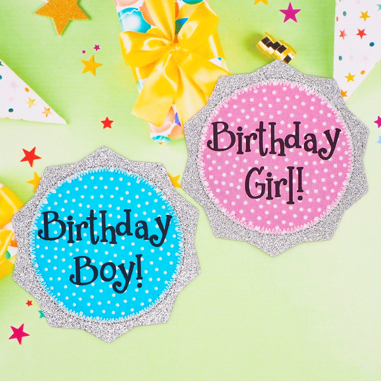 This safety pin backed birthday badge is the perfect accessory to wear on your little (or big!) ones special day. It can be used year after year and by other members of the family too!