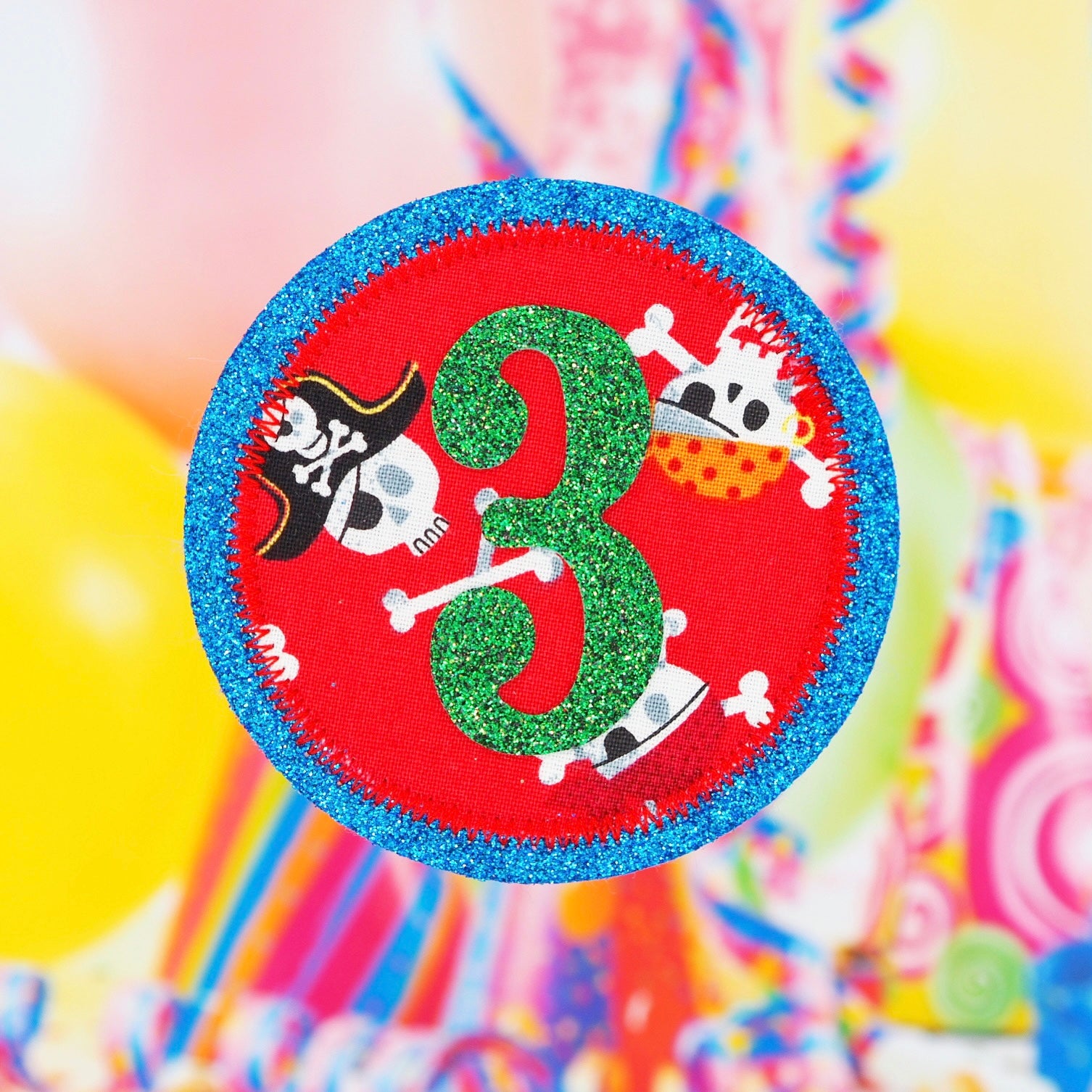 This pirate print birthday badge is the perfect accessory to wear on your little ones big day!