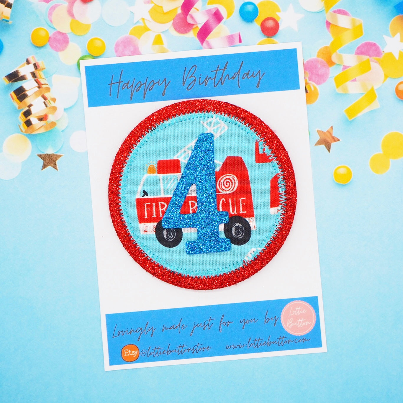 This fire truck themed birthday badge is the perfect accessory for the big day!