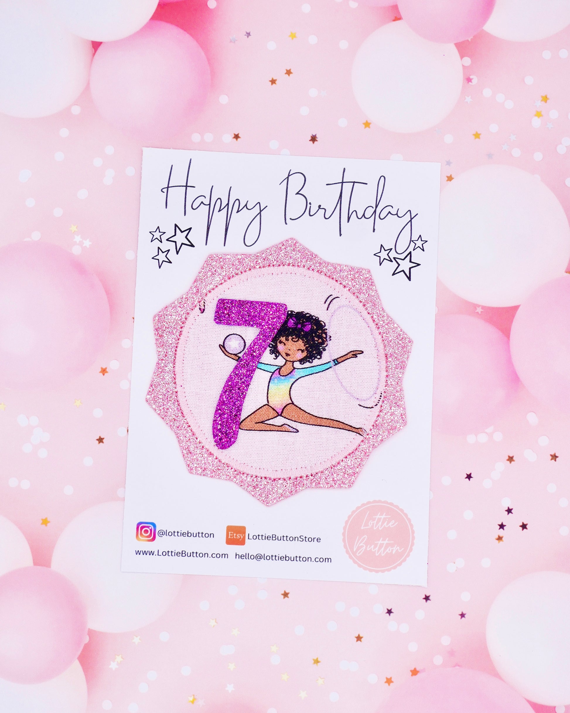 The perfect birthday pin badge for that little gymnastic fan in your life.