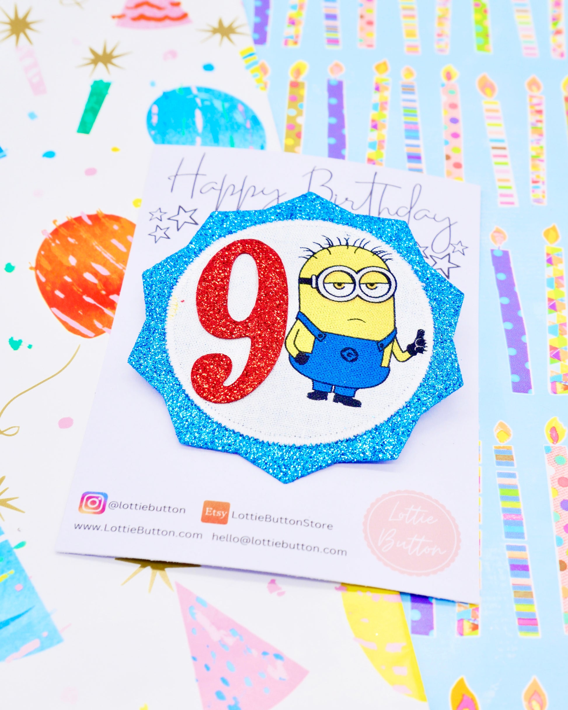 Introducing this handmade Minion themed birthday badge, the perfect accessory for any Despicable Me birthday boy or girl!