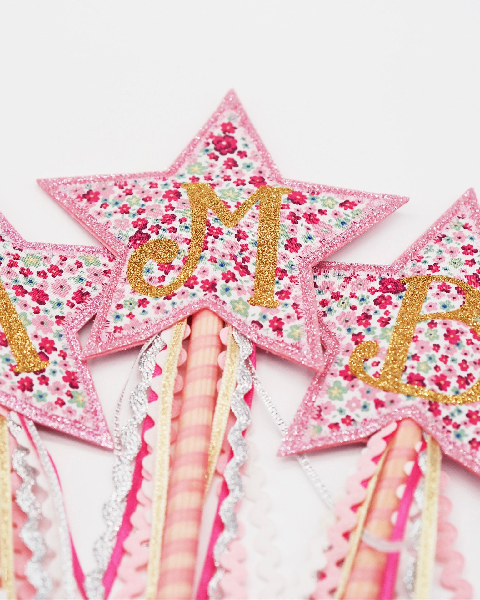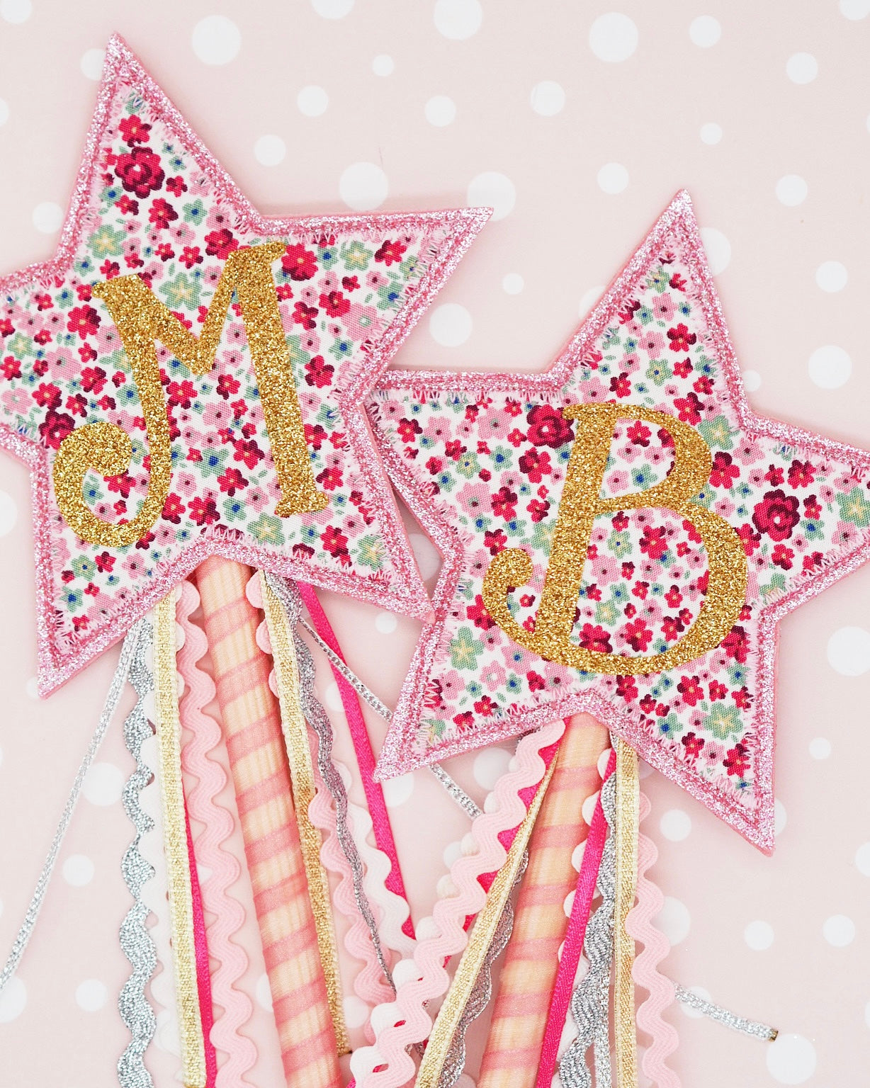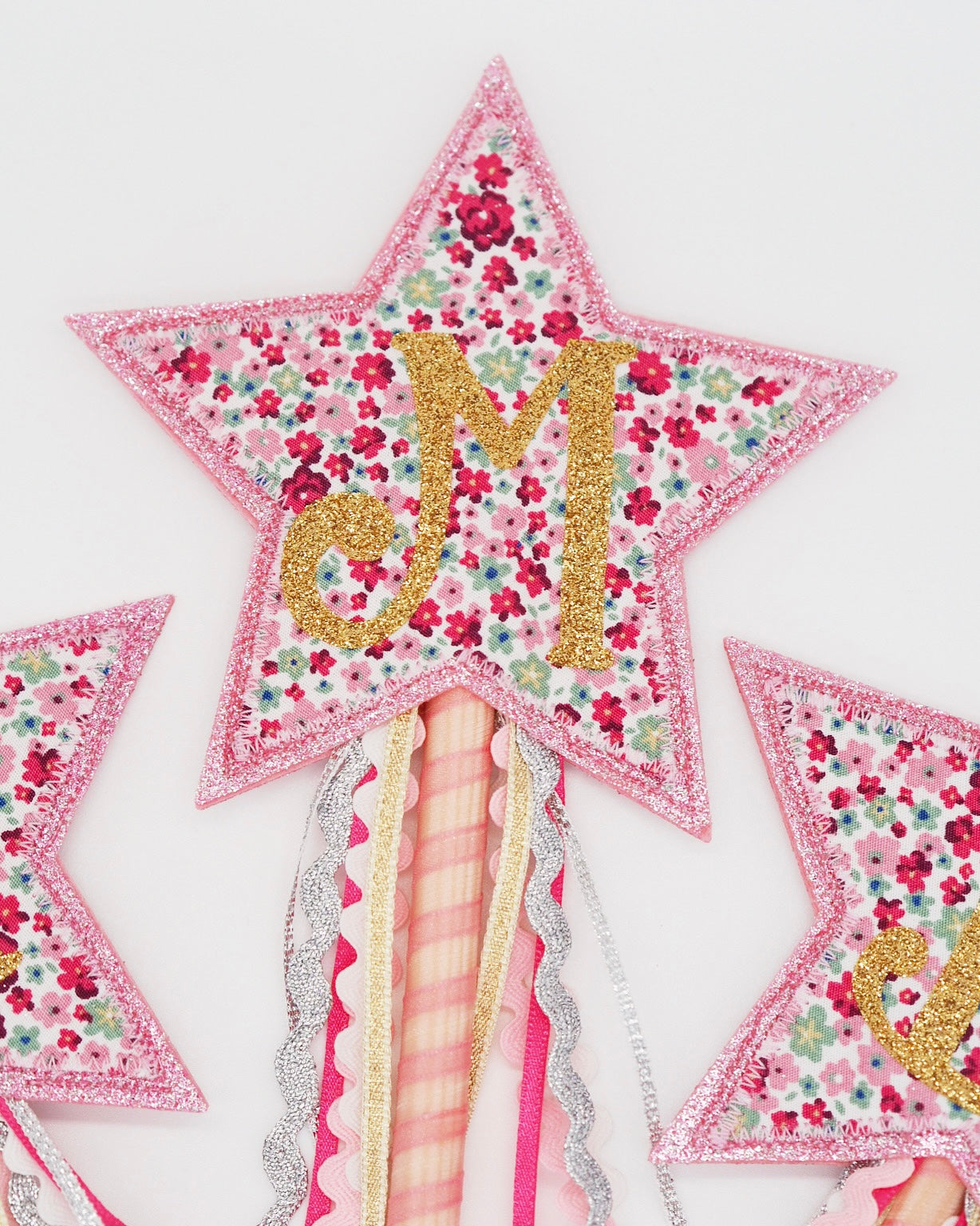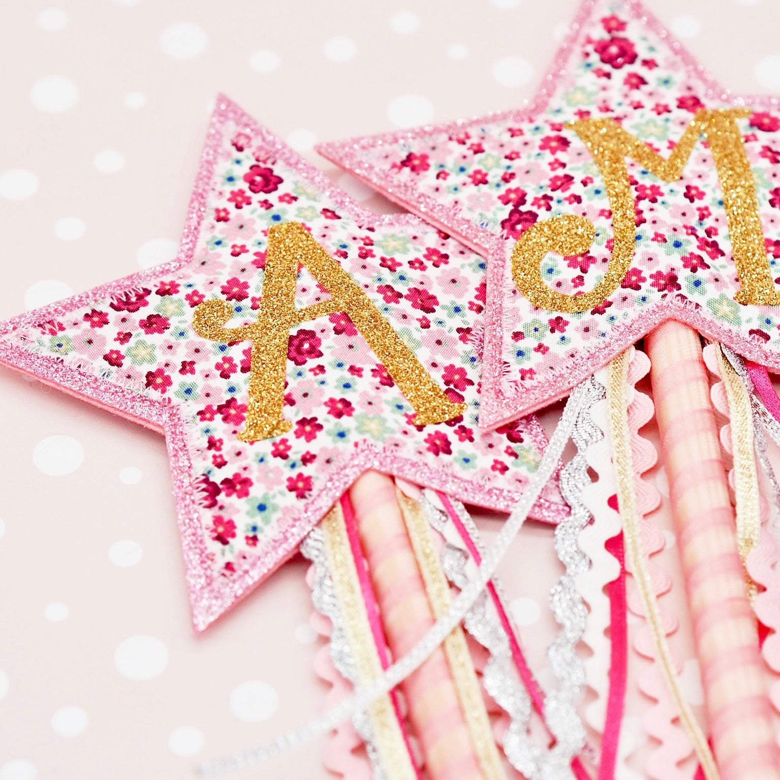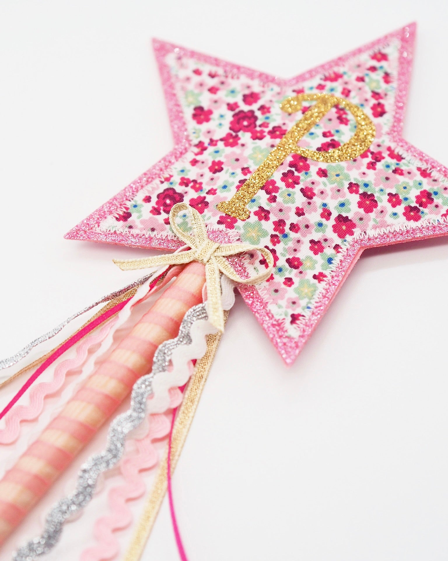 At the tip of the wand sits a shining star, crafted from shimmering glitter felt & cotton fabric, personalised with your choice of initial or number.