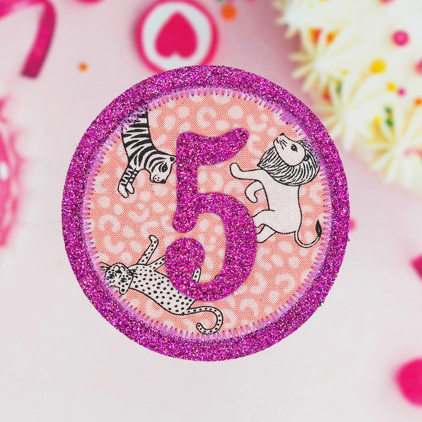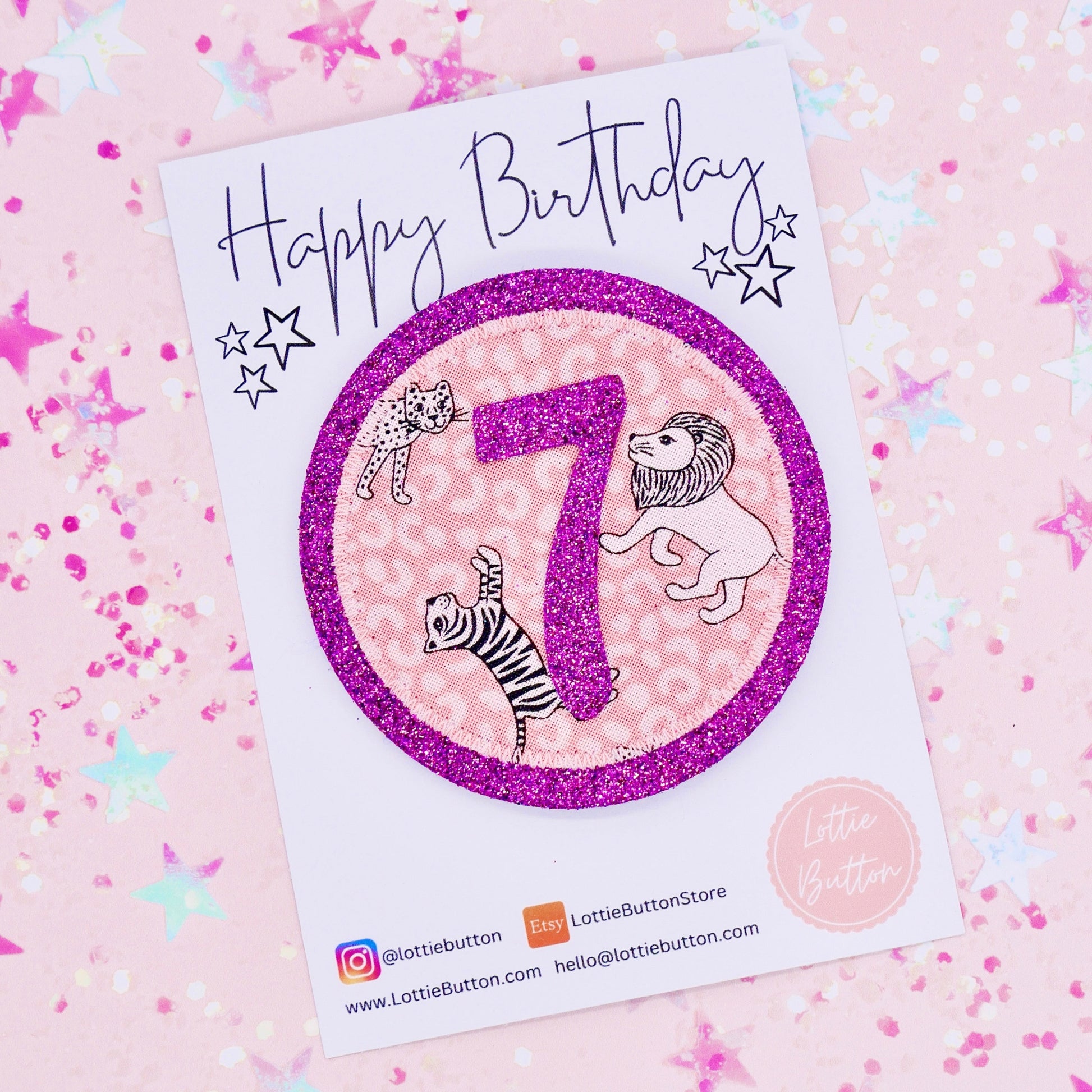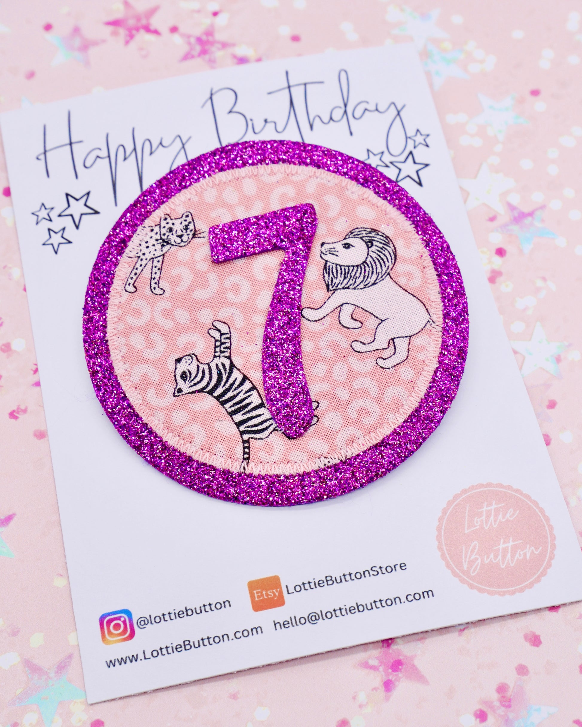 This super sparkly pink safari print birthday badge is the perfect accessory to wear on your little ones special day!