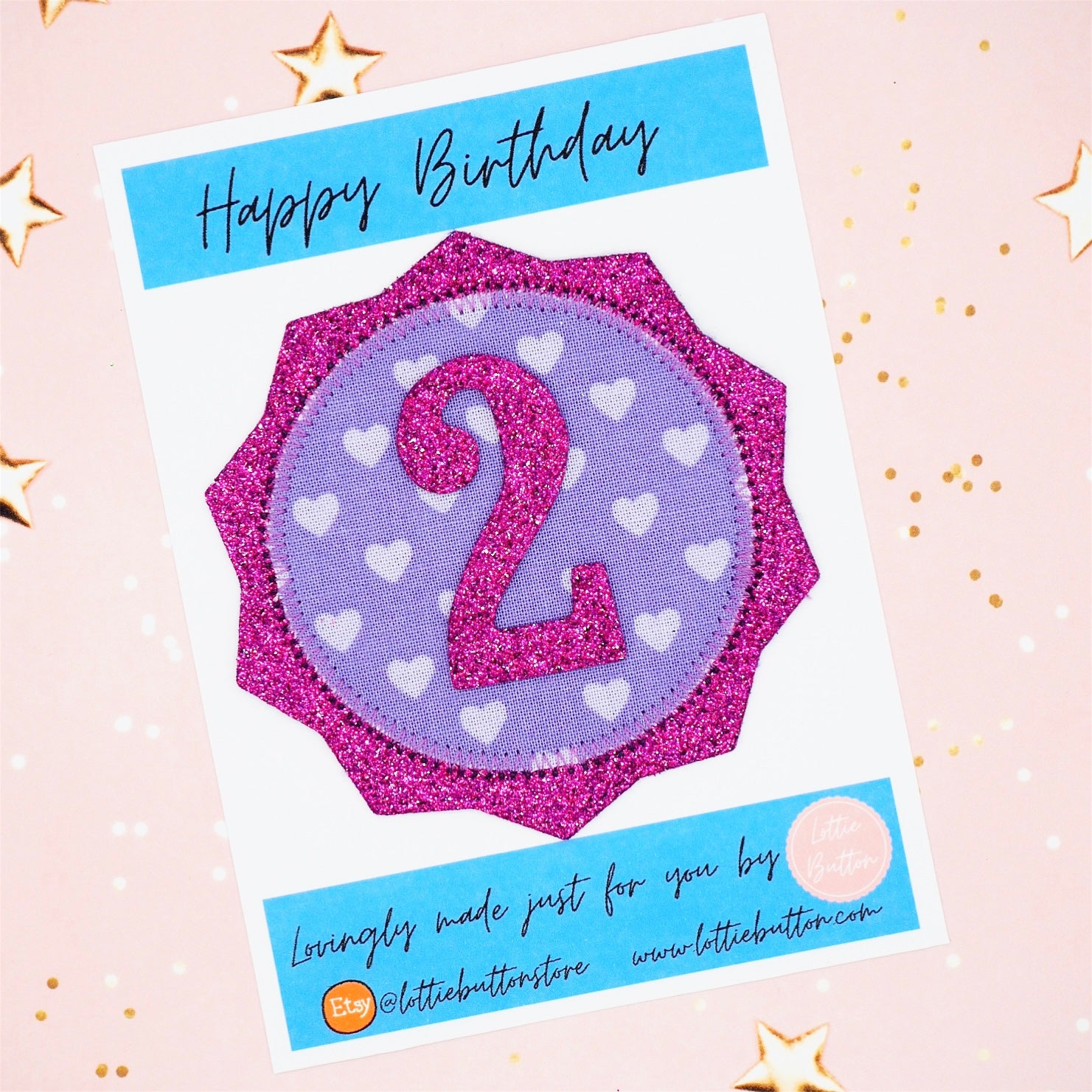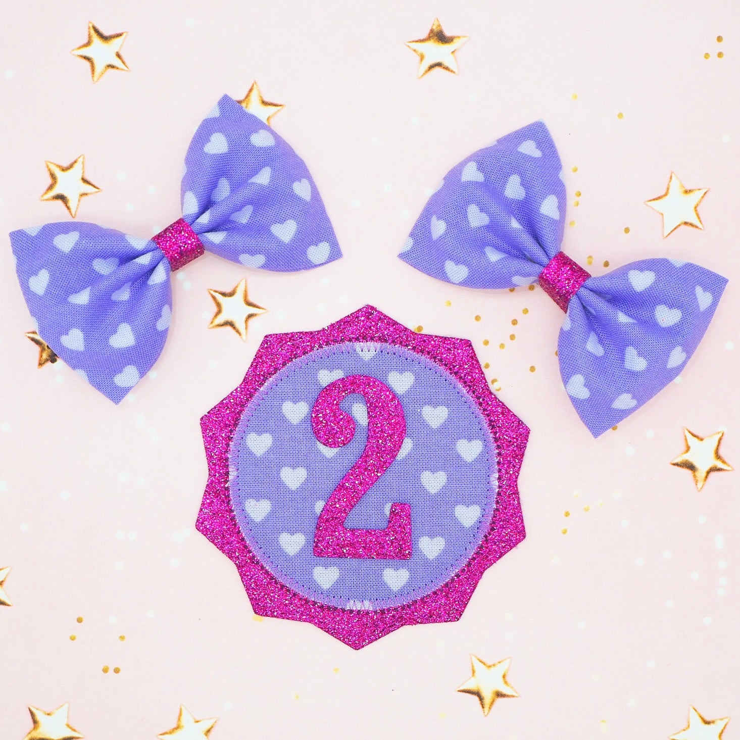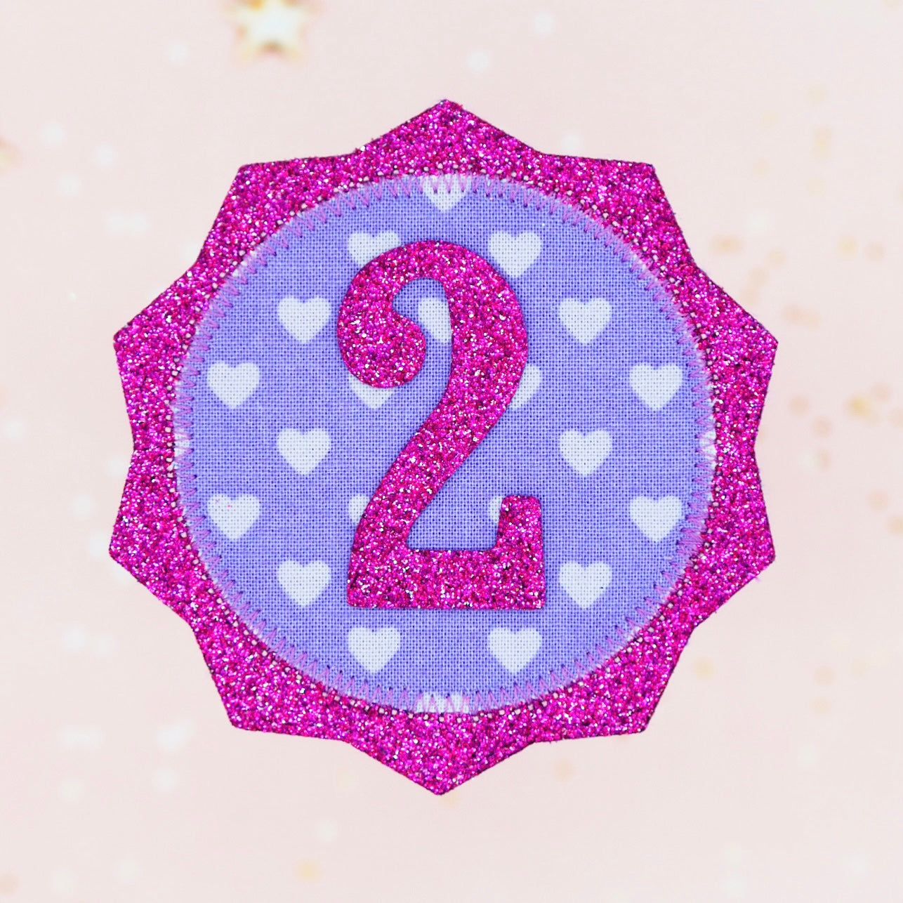 This super sparkly purple heart print birthday badge is the perfect accessory to wear on your little ones big day!