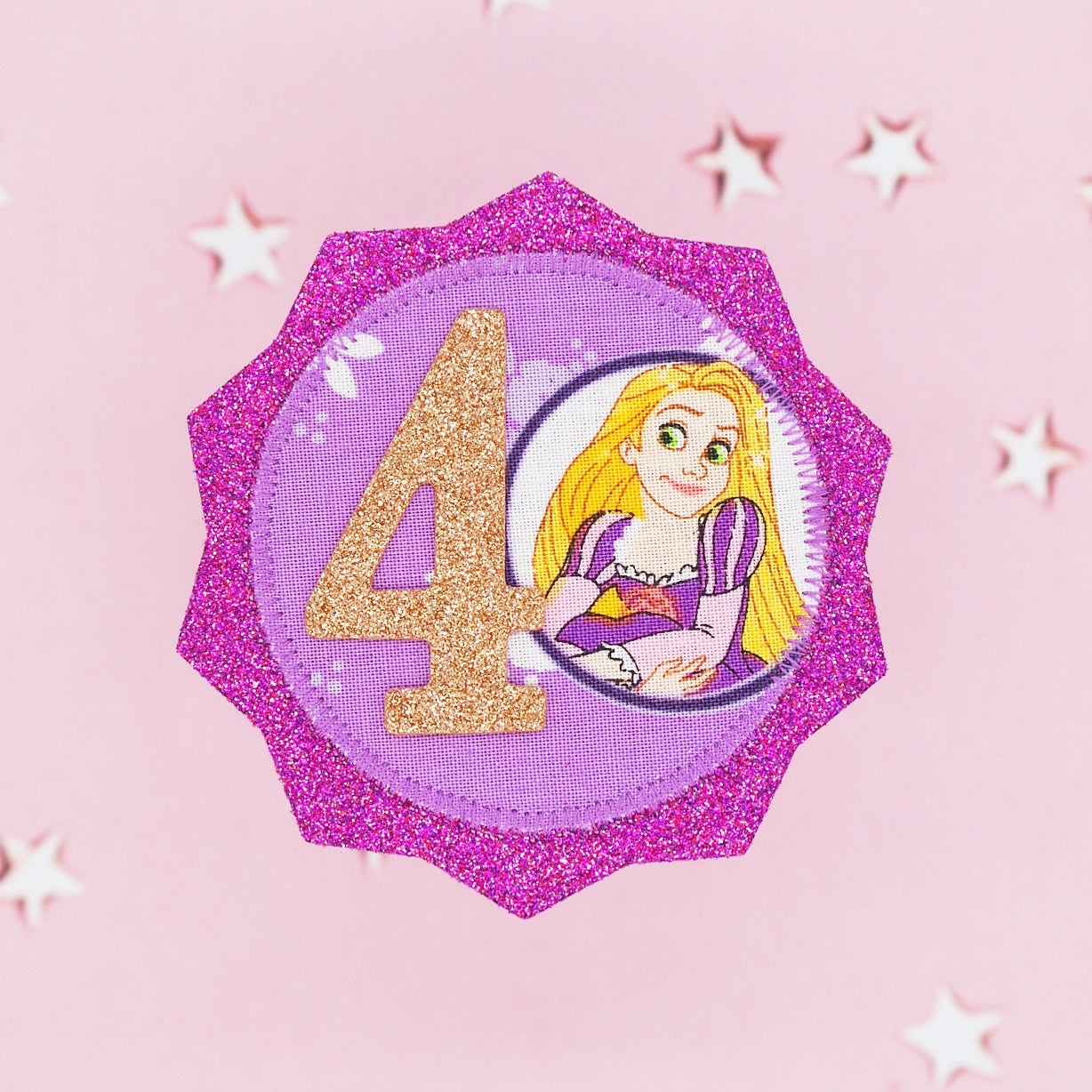 This handmade Disney Rapunzel themed birthday badge is perfect for kids and adults alike, bringing a touch of magic to any birthday party. Whether you're hosting a themed celebration or simply want to show off your love for Disney princesses, this badge is sure to be a hit with guests.