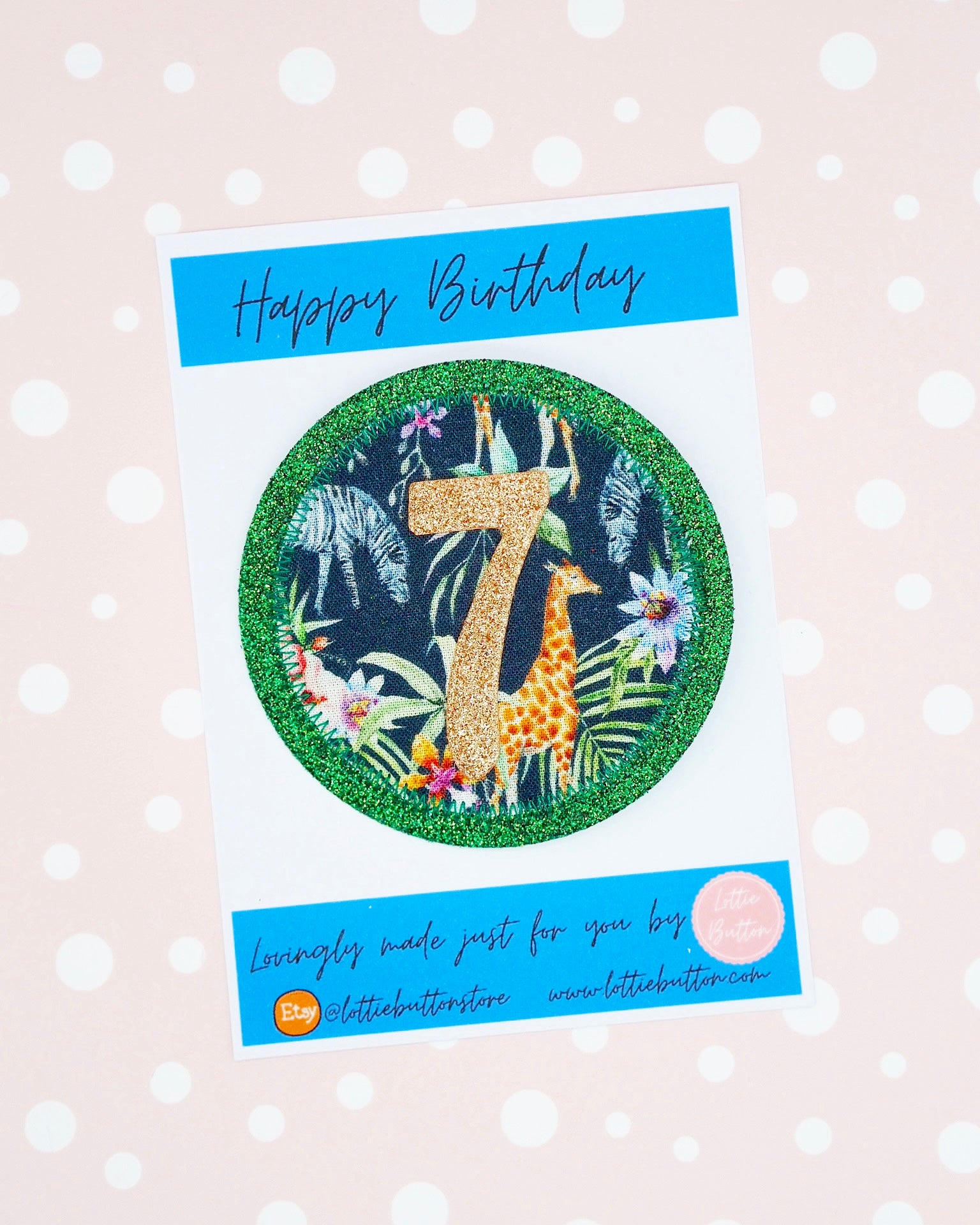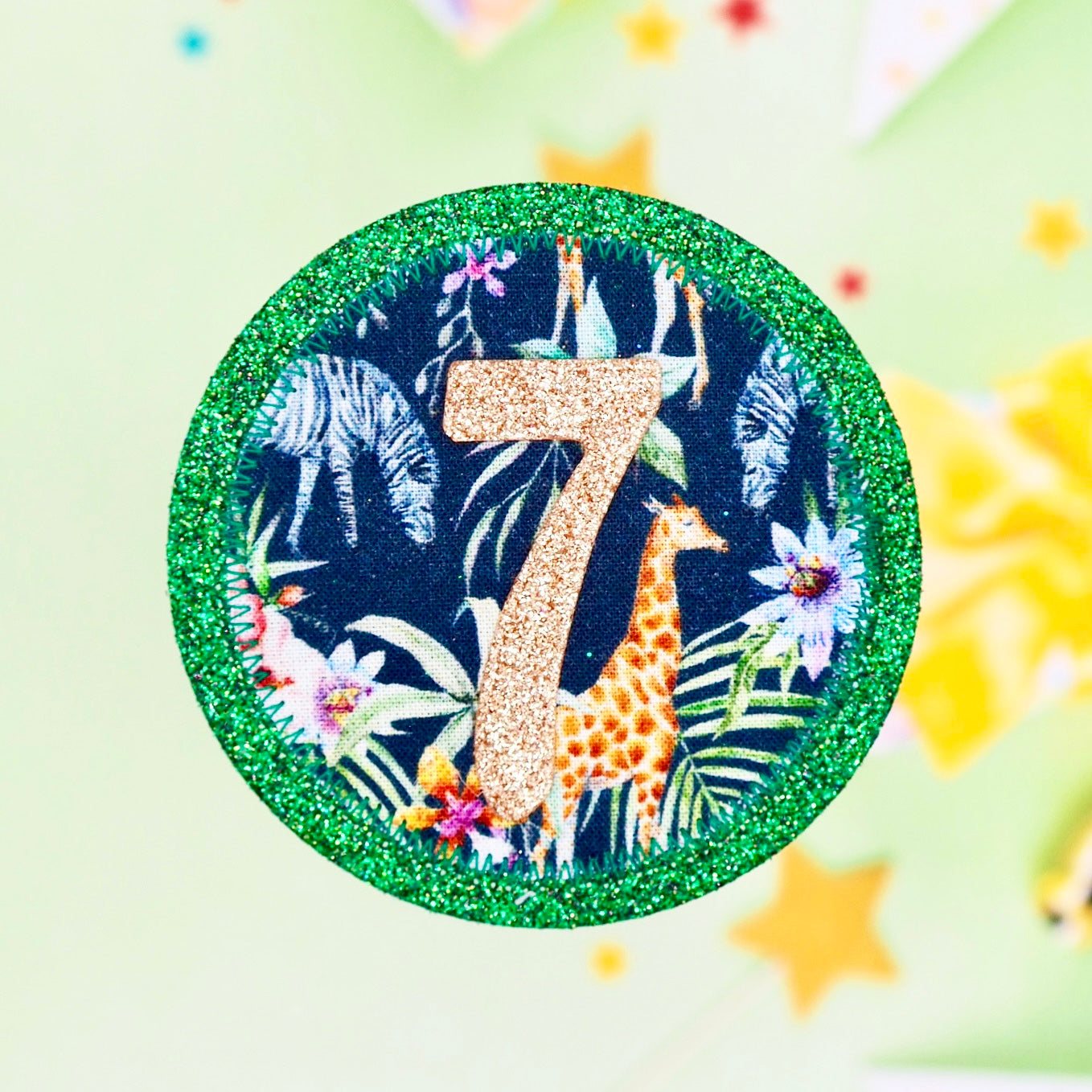 This safari print birthday badge is the perfect accessory for the big day for any little animal fan.