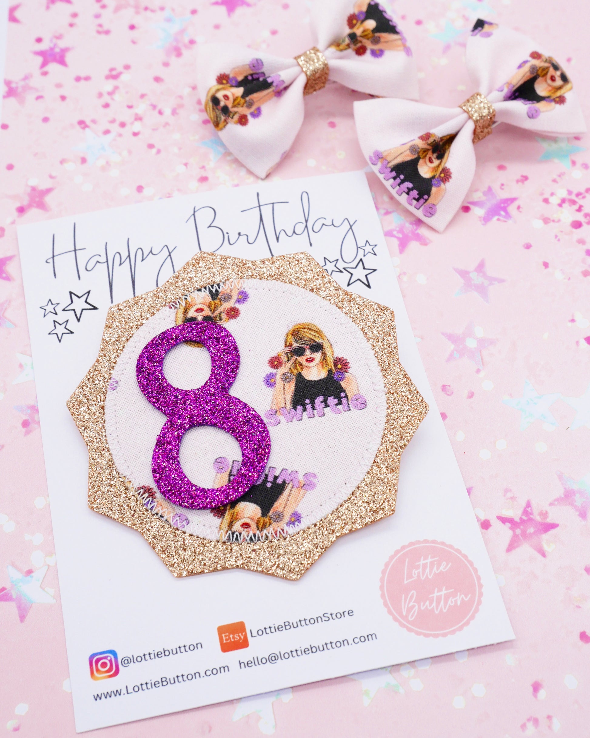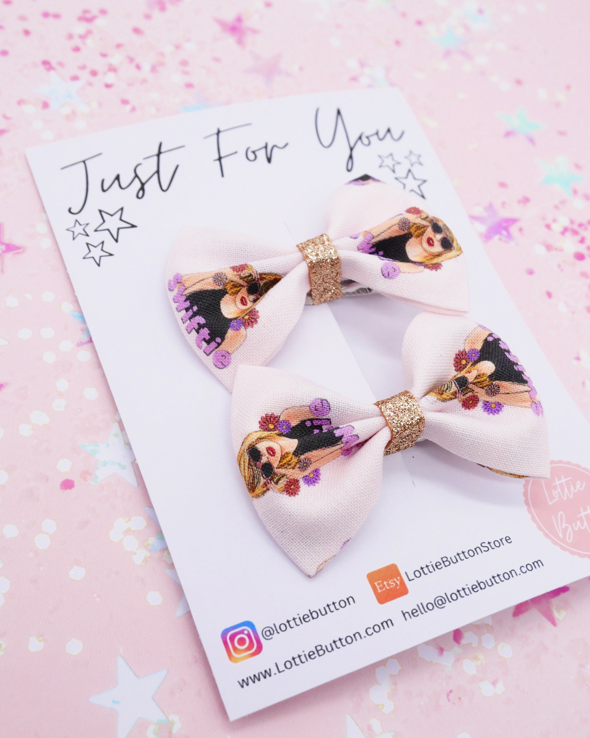 These Swiftie hair bows come fixed to alligator clips and measure approx 2” wide & come presented on a backing card reading ‘Just for you’ making them the perfect little gift.